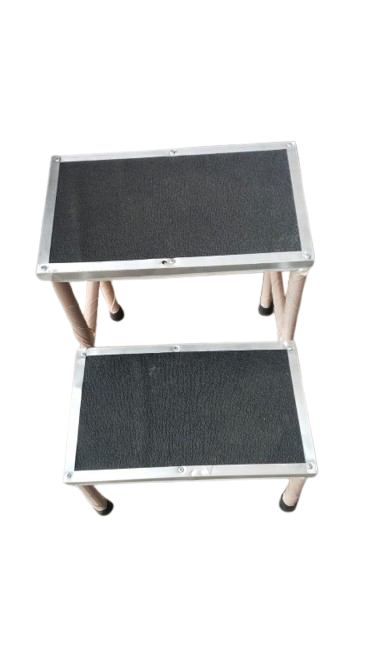 Made from tabular framework, the foot step double is used as a stair for patients. The legs are fitted with PVC stumps. The top of both the steps is fitted with rubber matting. We manufacture high quality foot step double. It is available at extremely competitive prices. These steps are pre treated and then powder coated using epoxy paints.